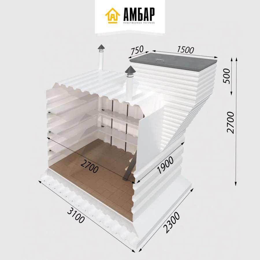 Пластиковый погреб Амбар "Пологий" 3.1х2.3