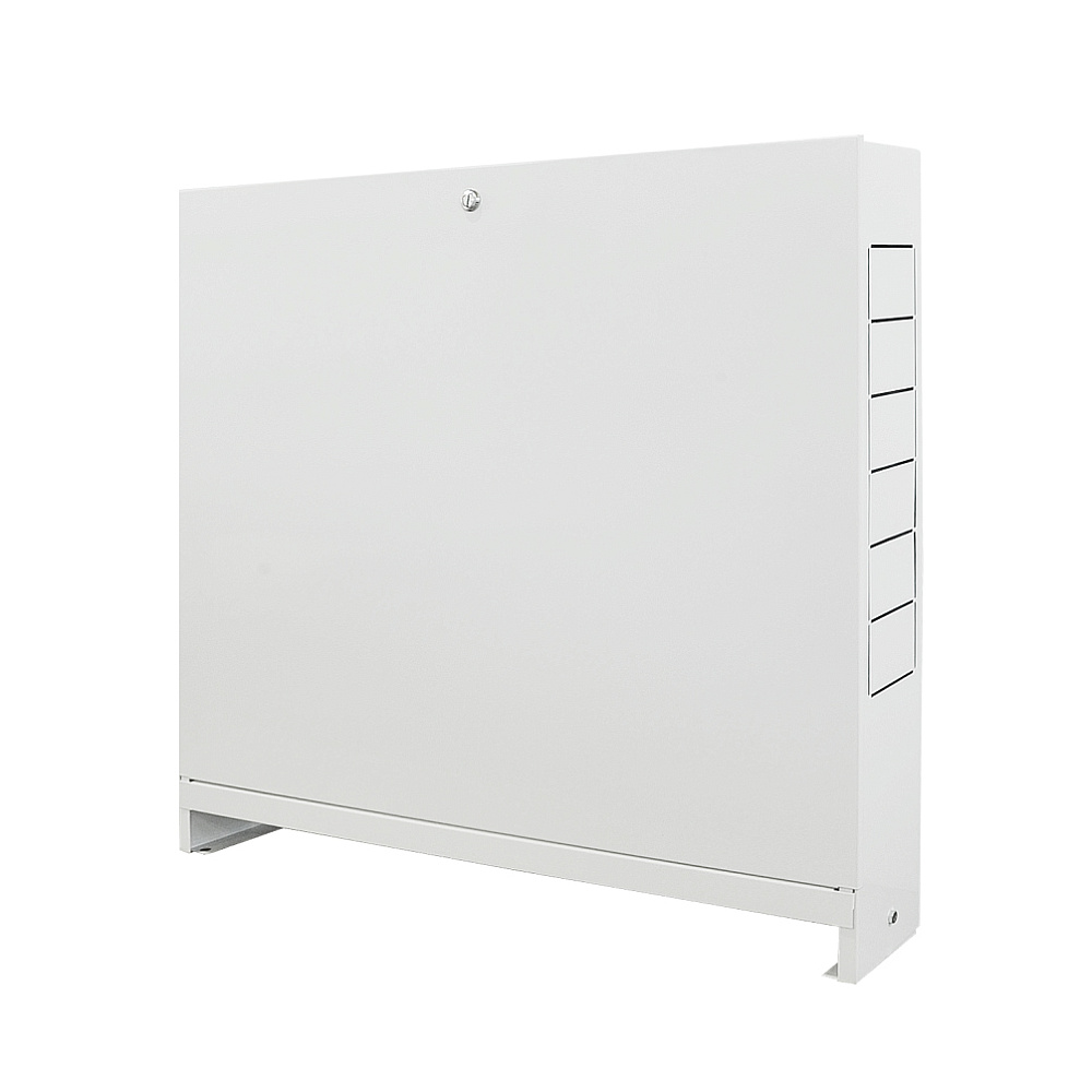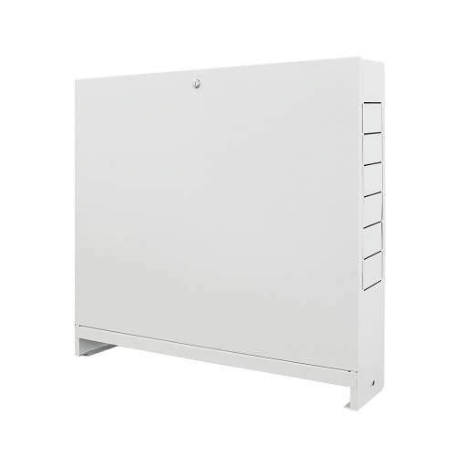 Коллекторный шкаф ШРН номер 3 стандартной глубины — применяется для монтажа и скрытия с глаз такого оборудования, как коллекторные группы, коллектора, запорная арматура, а так же другие компоненты по мере необходимости. Этот коллекторный шкаф является накладным на стену и изготовлен из стали толщиной 0.8 мм, покрытой порошковым напылением. Перед окраской на производстве осуществляется процесс фосфатирования. Стандартная глубина устройства (120 мм против 150 мм у глубокого шкафа) далеко не всегда позволяет размещать в нем смесительные узлы с насосами. Габаритные размеры (ВхГхД), мм — 652х120х707. Вес — 7.3 кг. Ящик имеет на передней двери защелку под отвертку для ее закрывания. Ключ не предусмотрен. В коробке для защиты при транспортировке поверхность оборудования покрыта пленкой.ОТКРЫВАЕТСЯ БЕЗ КЛЮЧА ЛЮБЫМ ПЛОСКИМ ПРЕДМЕТОМ!